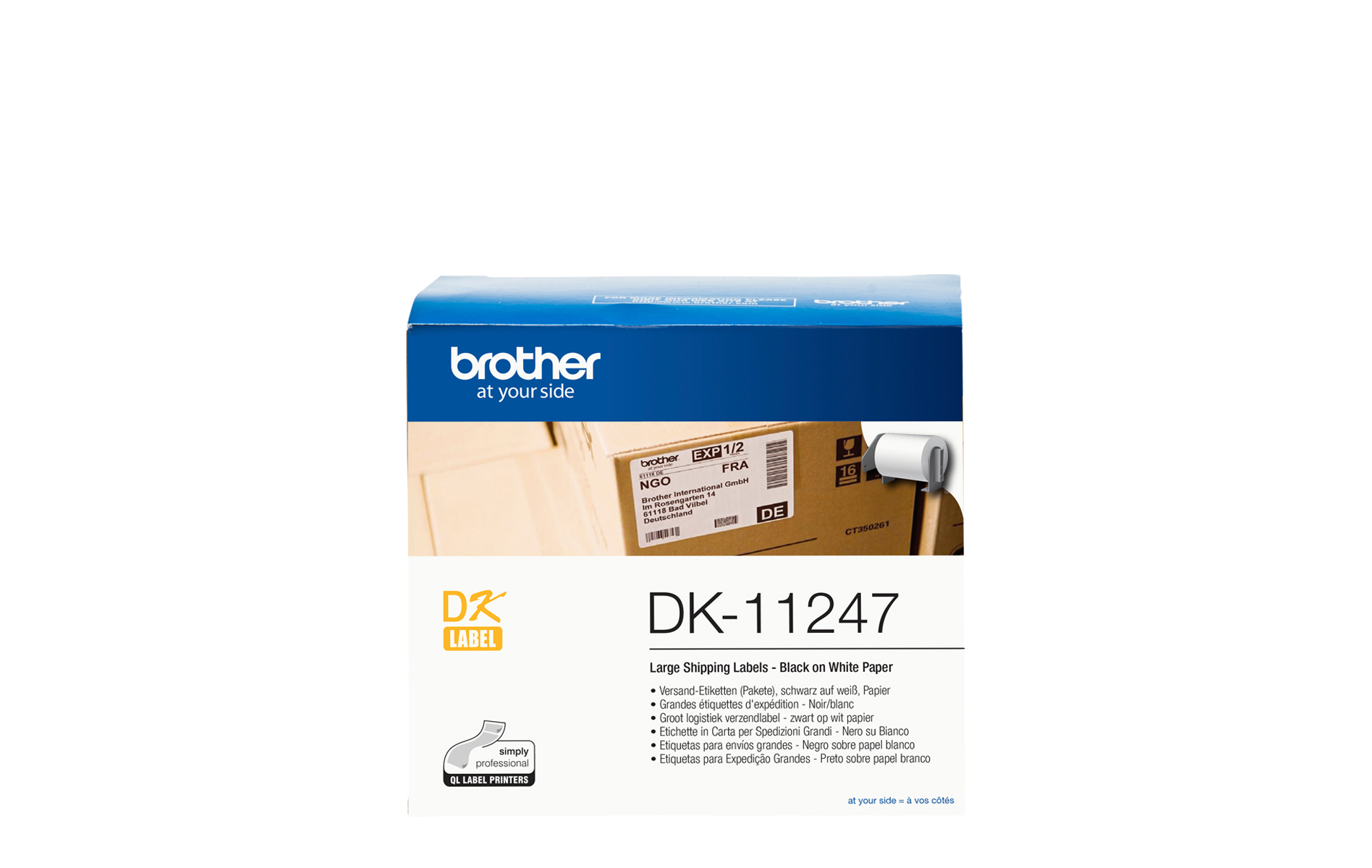 These Genuine Brother DK-11247 Black on White labels come in handy for a wide range of your general labelling needs. For use in both the warehouse and office environments, these pre-cut large shipping labels can be used to display logos, barcodes, visitor badges or shipping information.