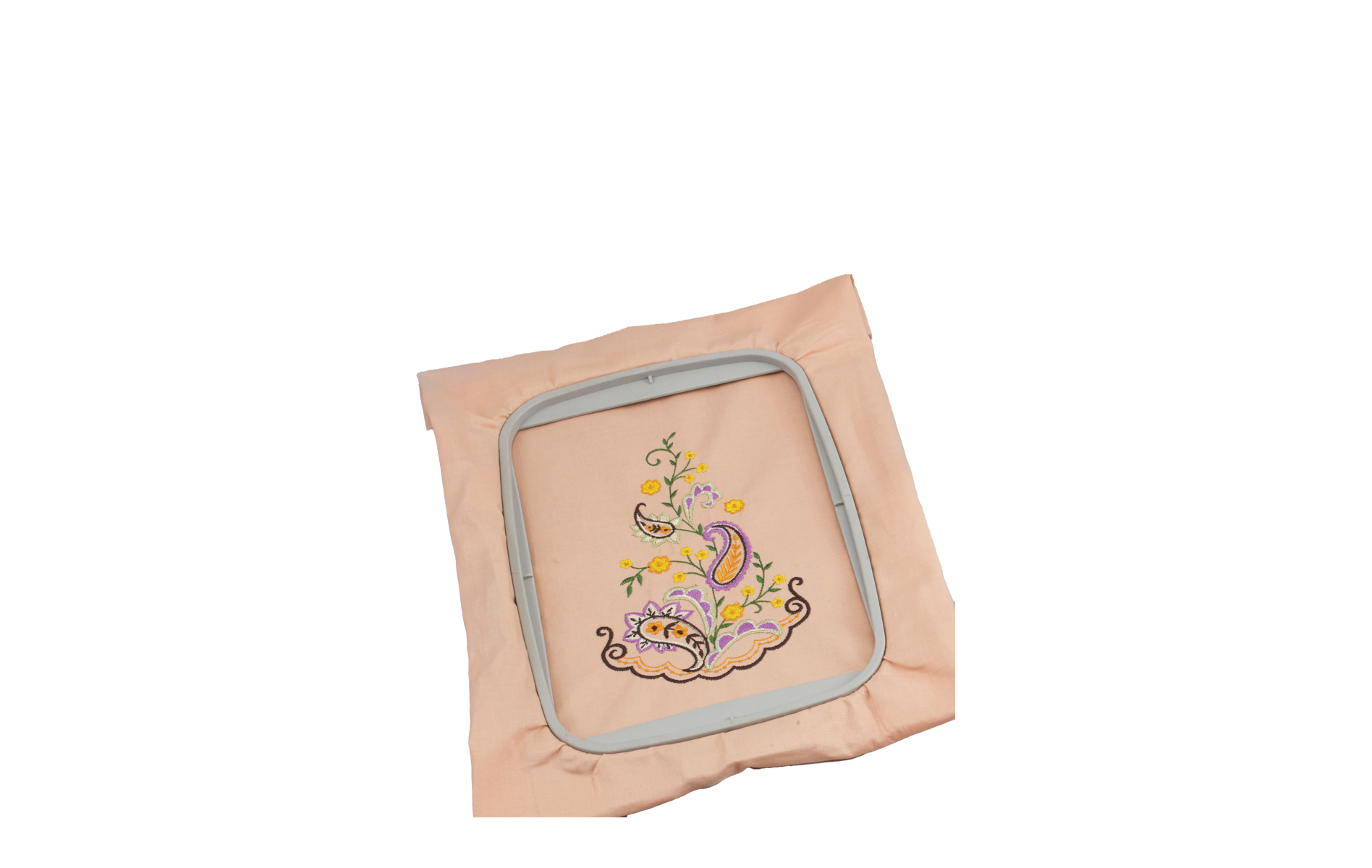 - Embroidery Frame Set Large EF84 H 180mm x W 130mm (H 7" x W 5") Use this size hoop for larger single designs or to combine designs and lettering with the machine edit feature. Use the adjustment screw for securing a wide variety of fabric thicknesses in the hoop. Use the clear grid notched for accurate placement of embroidery designs. There are markings on hoop for easy reference.