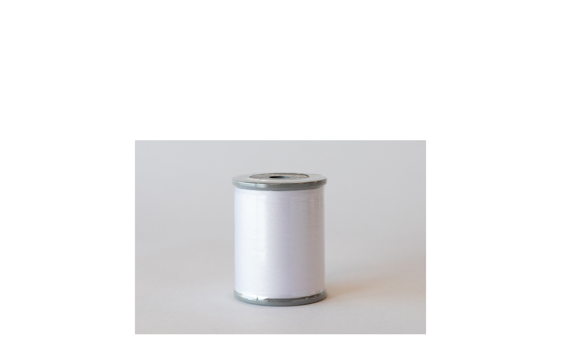 White 100% Polyester Colour Fast, High Shine Embroidery Thread. ET threads are 300m/spool, 135 dtex/2, #50 weight 100% polyester thread.