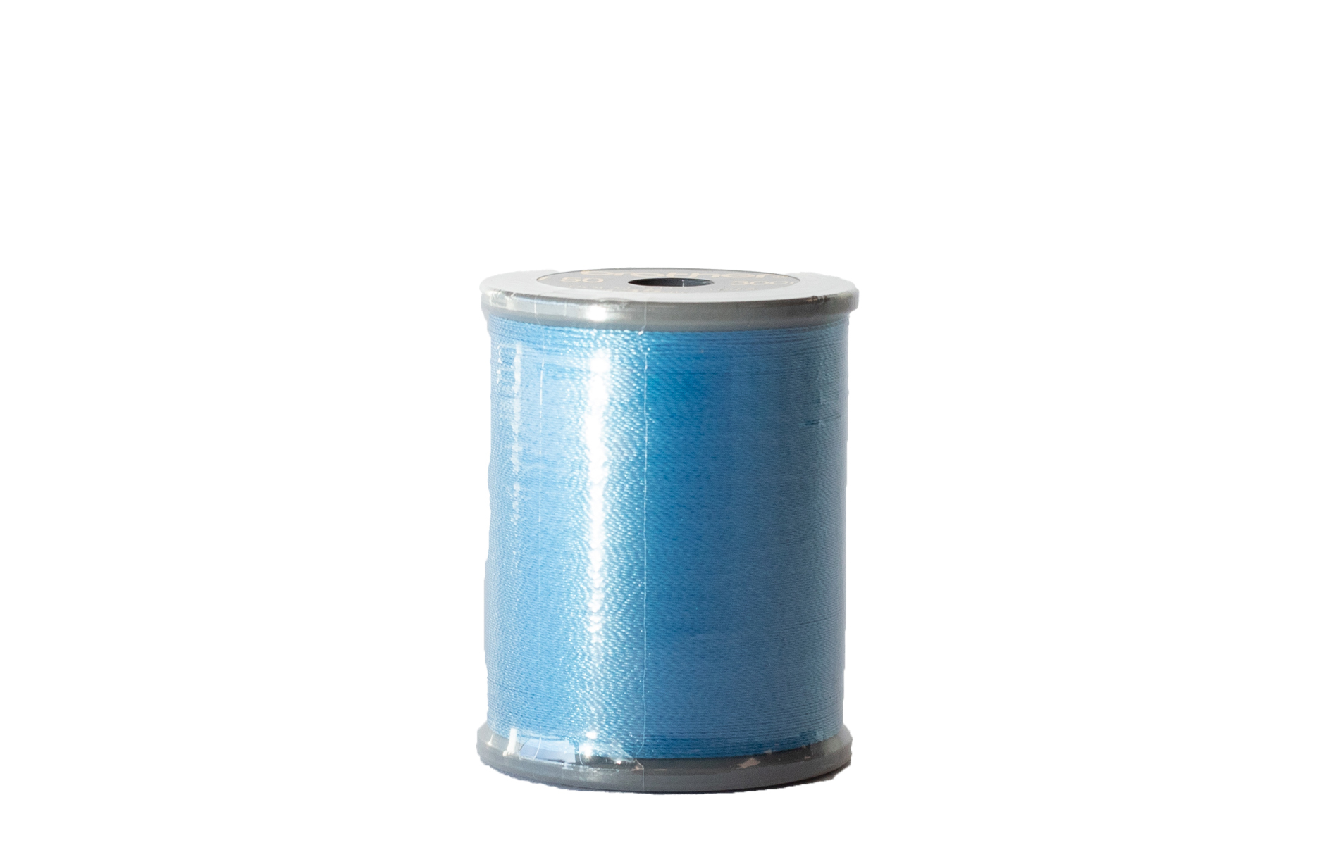 Sky Blue 100% Polyester Colour Fast, High Shine Embroidery Thread. ET threads are 300m/spool, 135 dtex/2, #50 weight 100% polyester thread.
