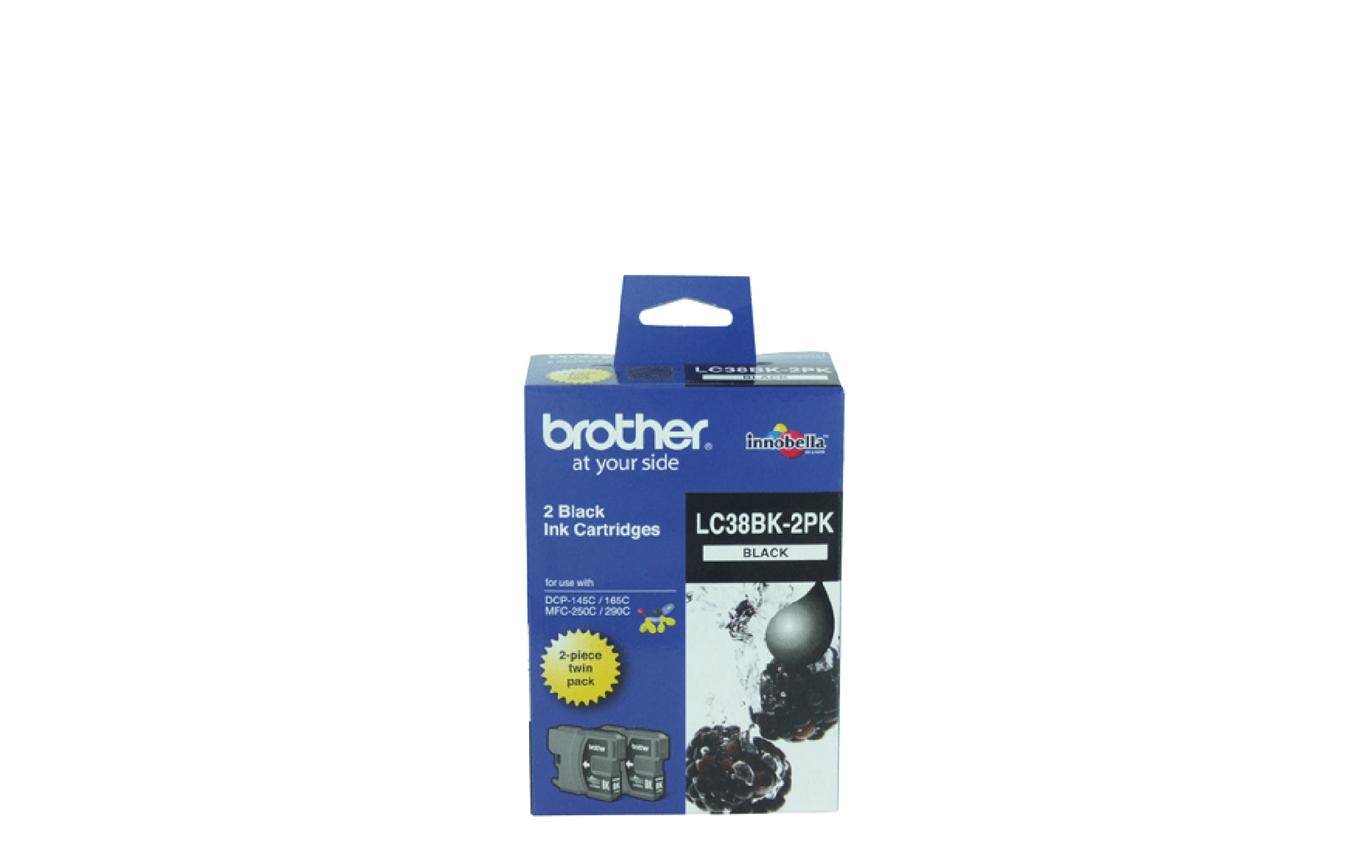 The Brother LC38BK 2PK Black Ink Cartridge – Double Pack. Each cartridge prints up to 300 pages.
