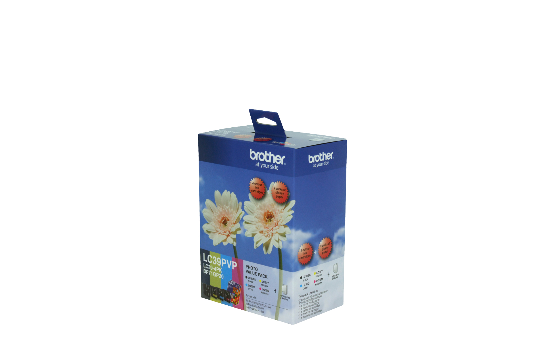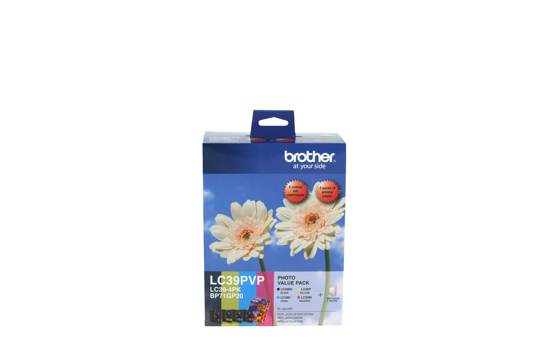 The Brother LC39PVP Black, Cyan, Magenta and Yellow Ink Cartridge Pack With Photo Paper.