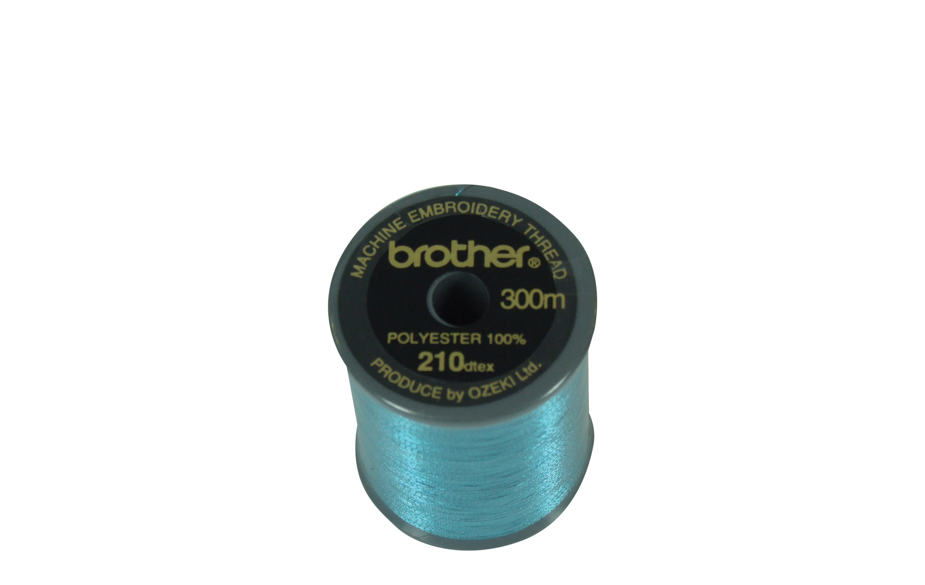 Light Blue, 100% Polyester Colour Fast Metallic Threads. MT threads are 300m/spool, 210 dtex, 100% polyester thread.