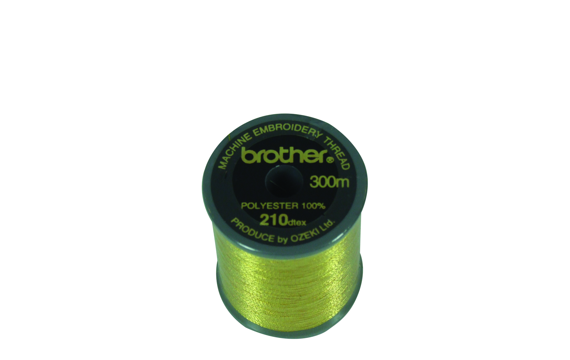 Rich Gold, 100% Polyester Colour Fast Metallic Threads. MT threads are 300m/spool, 210 dtex, 100% polyester thread.