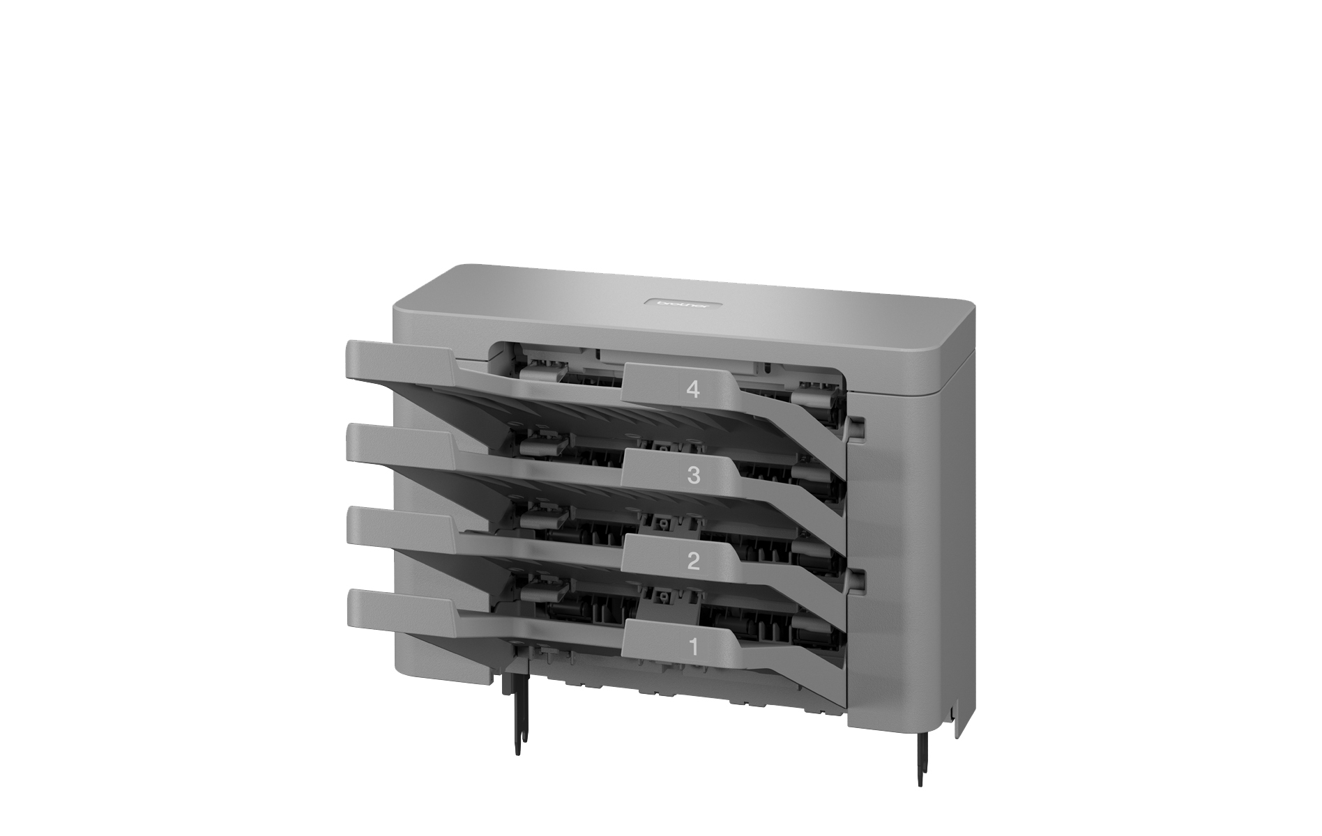 The Brother MX-4000 4-Bin Mailbox / Sorter / Stacker option helps increase control over your Brother printer’s output.