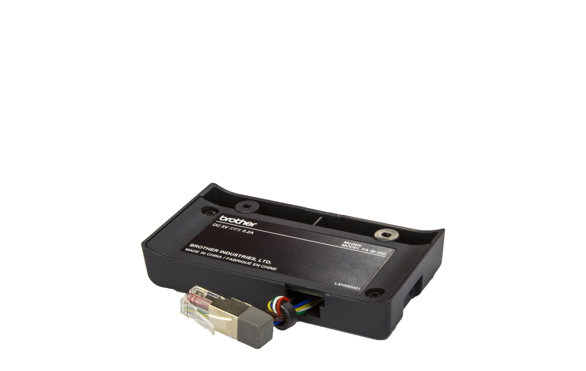 Professional label printer with PC connectivity, wired network, and integrated Wi-Fi, printing labels up to 36mm wide.