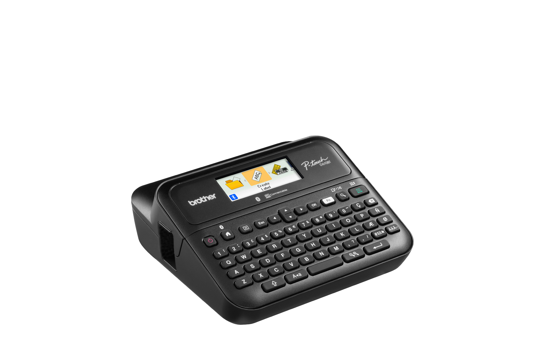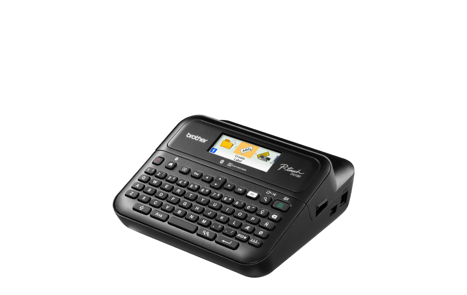 The PT-D610BT is a user-friendly desktop label printer that’s compatible with your way of working. With its large full colour high-resolution display, QWERTY keyboard, free Brother software and apps, USB and Bluetooth connectivity and other useful built-in features, it’s a versatile labelling solution that’s designed for labelling around the office.