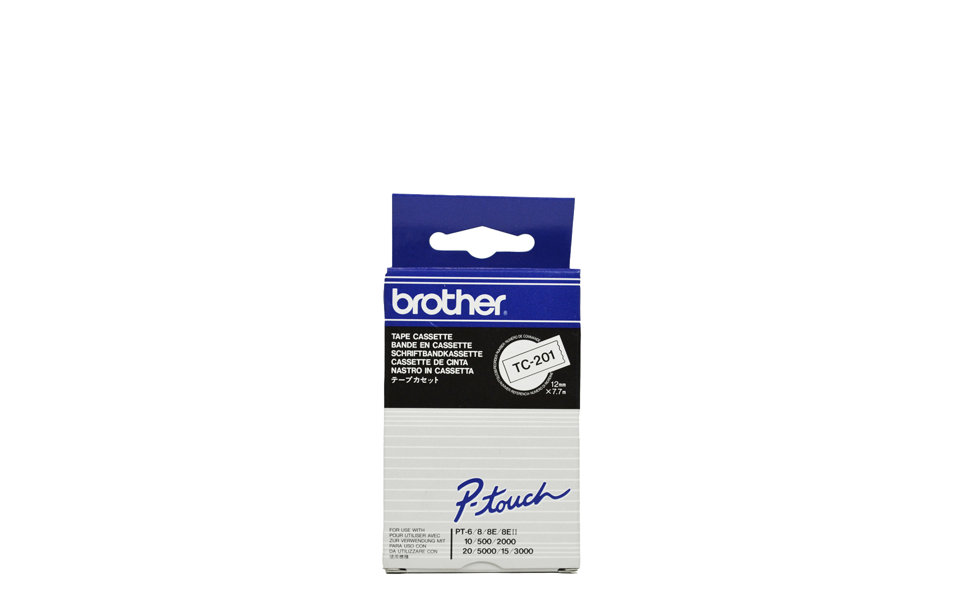 TC-201 Brother Genuine Black on White Non-Laminated Tape - 12mm