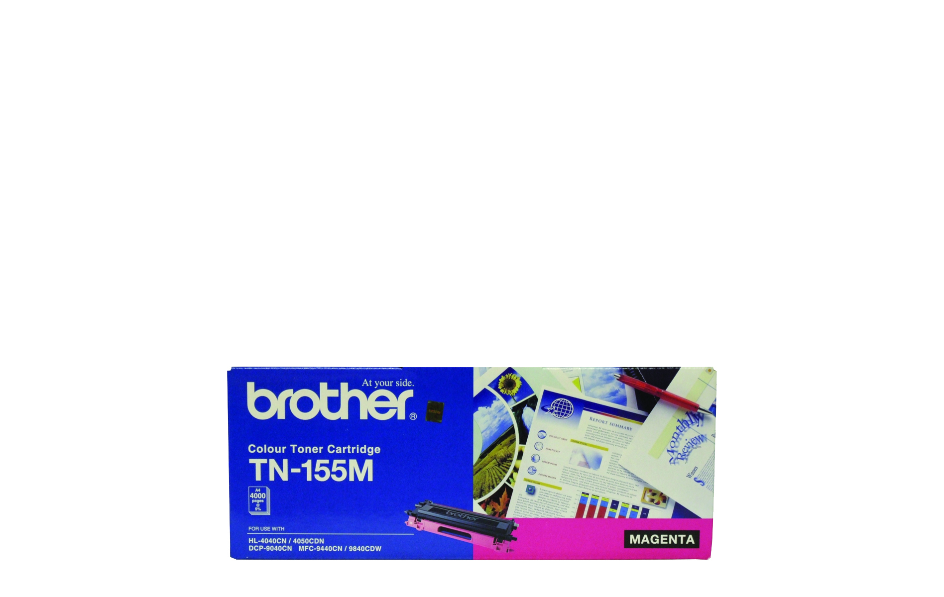 TN155M is a magenta high yield toner that gives you up to 4,000 pages of printing (approx. cartridge yield is declared in accordance with ISO/IEC 19798). Use this Brother genuine toner to receive our unique 4 Year On-site warranty and other leading service and support.