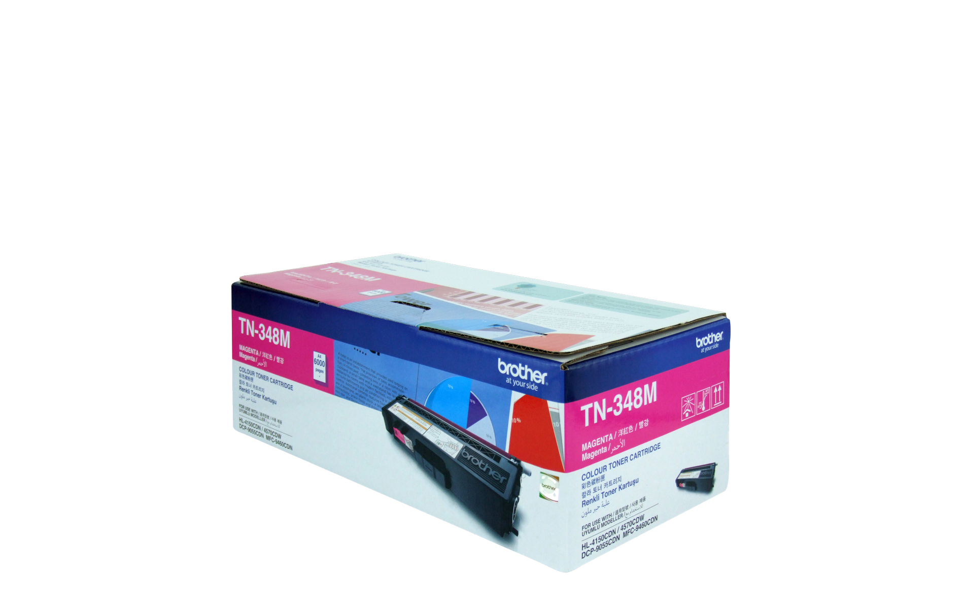 TN348M is a magenta high yield toner that gives you up to 6,000 pages of printing (approx. cartridge yield is declared in accordance with ISO/IEC 19798). Use this Brother genuine toner to receive our unique 4 Year On-site warranty and other leading service and support.