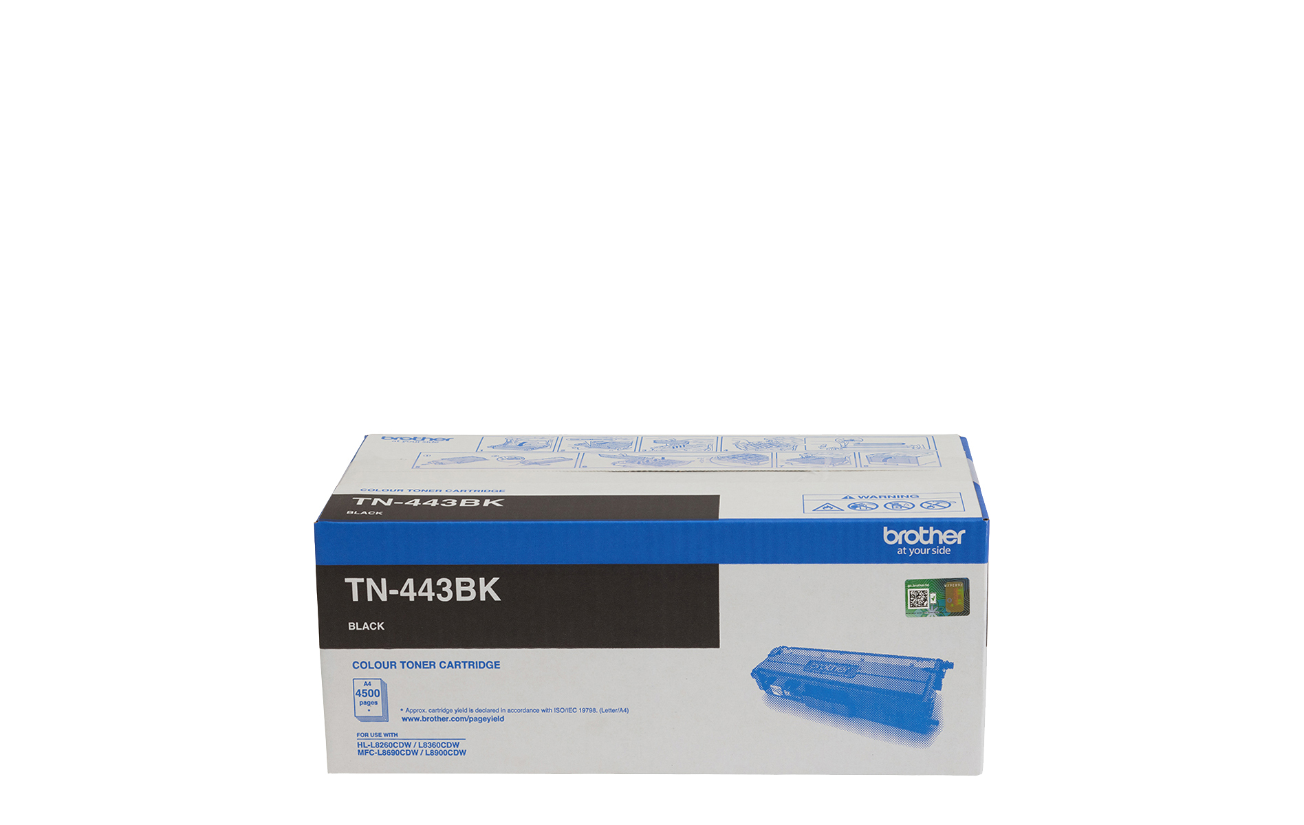The TN-443BK high-yield black toner gives you up to 4,500 pages of printing (approx. yield is declared in accordance with ISO/IEC 19798). Use this Brother Genuine toner to receive our unique 4-Year On-site Warranty and other leading service and support.