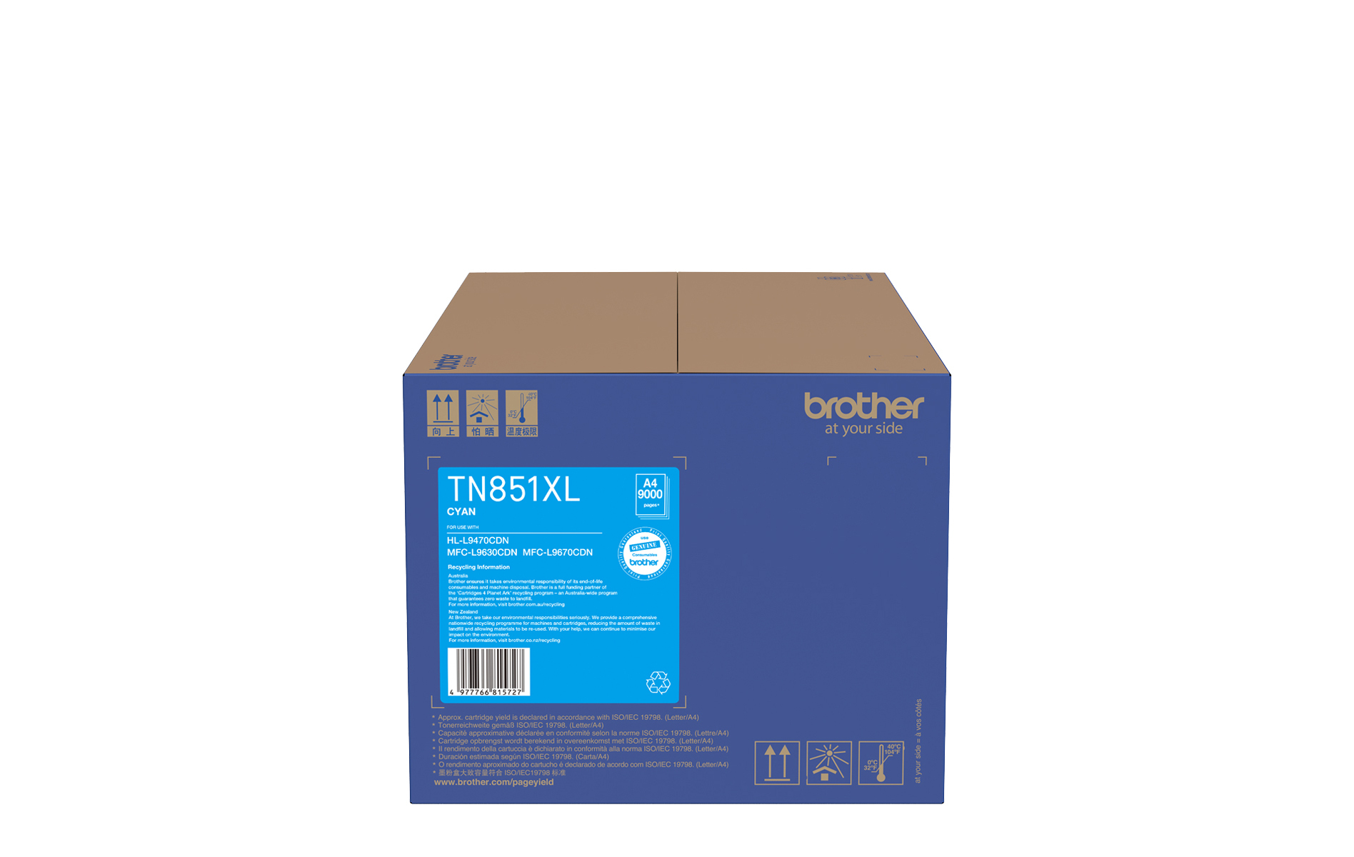 The TN851XLC cyan high capacity toner gives you up to 9,000 pages of printing (approx. yield is declared in accordance with ISO/IEC 19798). Use this Brother genuine toner to receive our unique 4-year on-site warranty and other leading service and support.