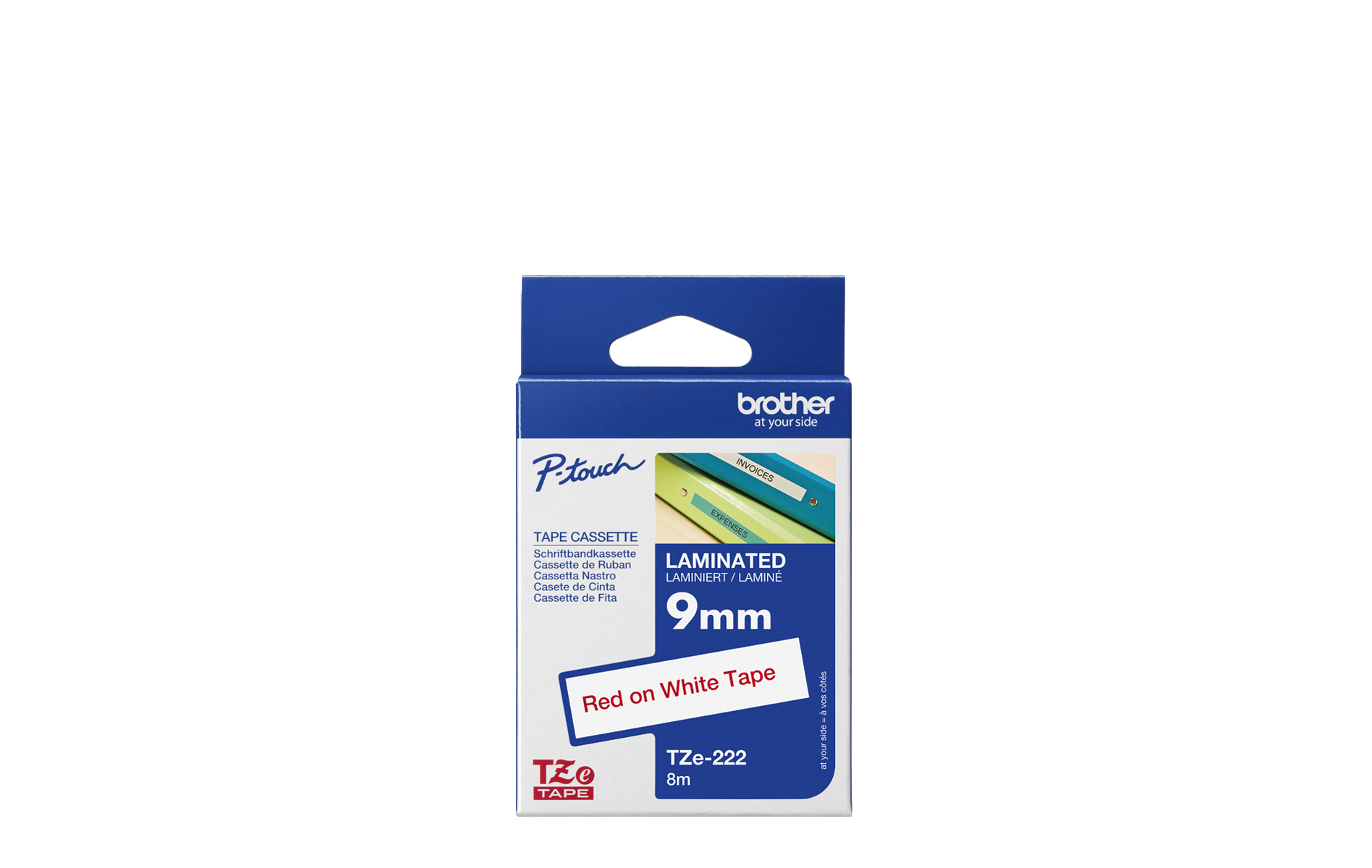 Compatible with a wide range of Brother’s P-touch printers, this genuine laminated TZe-222 labelling tape cassette is especially versatile thanks to its easy-to-read Red and white colour – so it comes in useful around the home, office and in other workplaces.