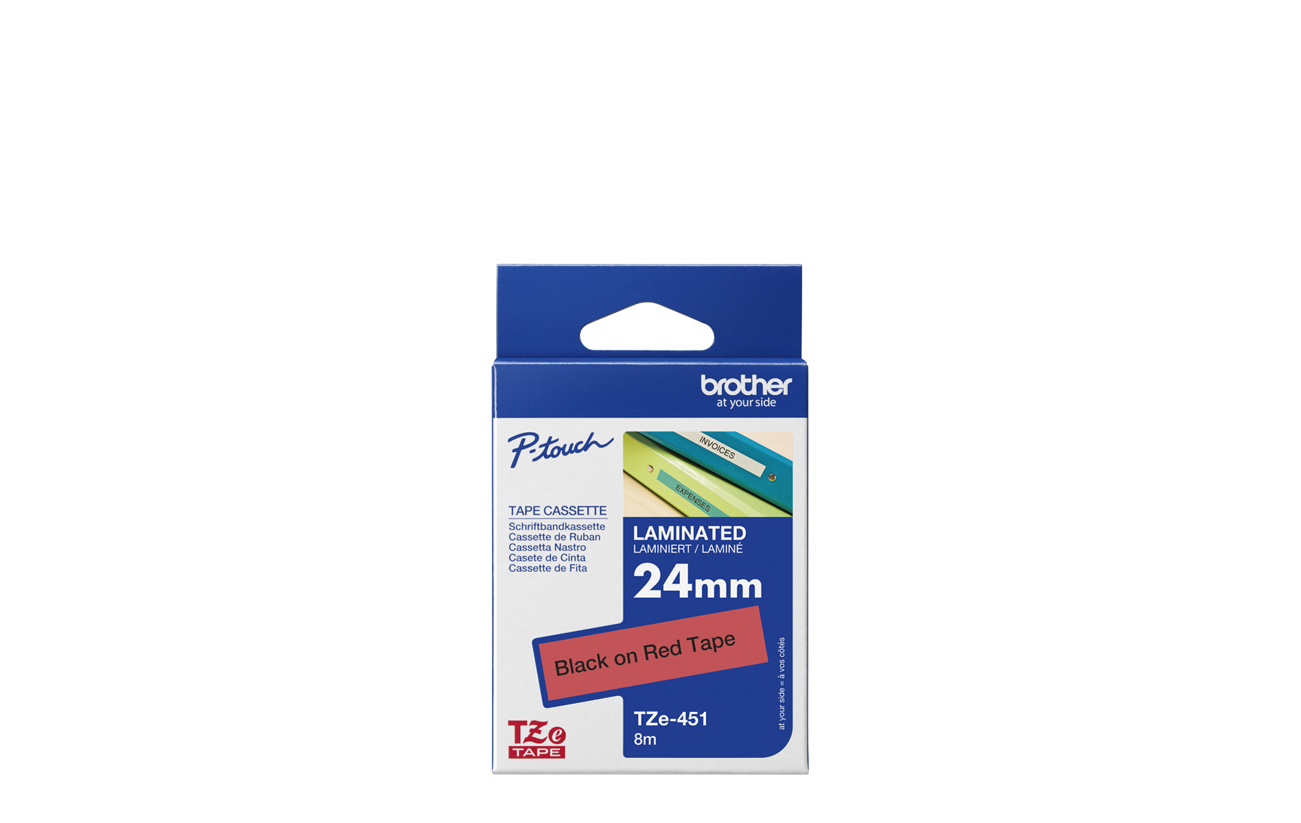 Compatible with a wide range of Brother’s P-touch printers, this genuine laminated TZe-451 labelling tape cassette is especially versatile thanks to its easy-to-read black and Red colour – so it comes in useful around the home, office and in other workplaces.