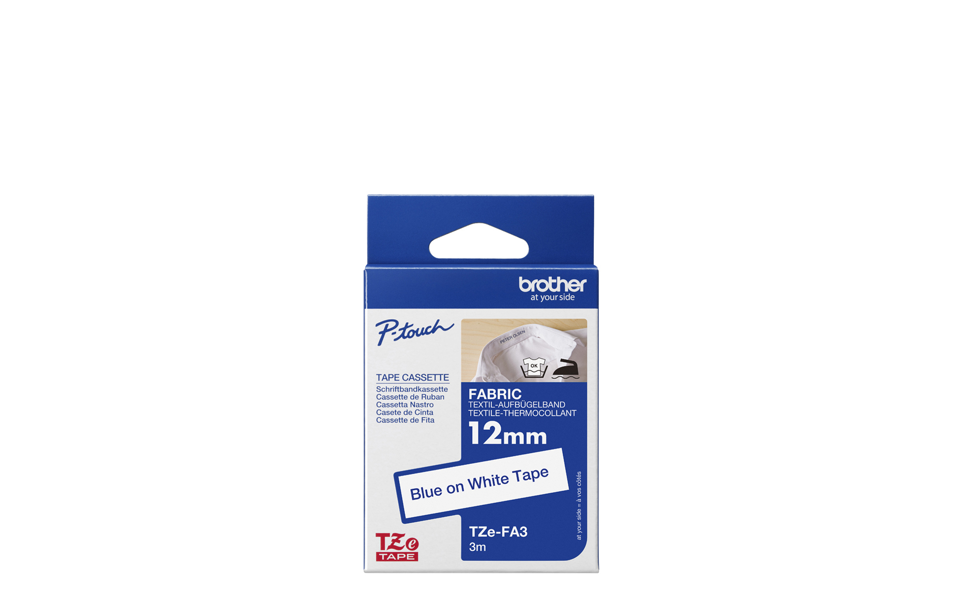 Keep track of your child’s clothing more easily by clearly labelling them with this handy 12mm TZE-FA3 iron-on fabric tape. As a genuine Brother product, TZe-FA3 tape is guaranteed to have the staying power you need, wash after wash - plus the blue on white design ensures your labels are especially easy to read. Compatible with P-touch label printers that show the TZ or TZe logo on the tape cassette cover.