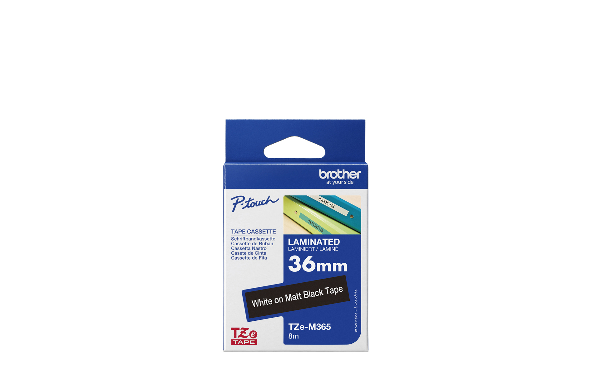 This premium looking Genuine TZe-M365 white on matt black laminated tape provides a classy finish to any office or small business application. At 36mm wide it is ideal for a range of applications. The durable, easy-to-read laminated label tape is suitable for both indoor and outdoor use and remains securely in place even in hot and cold extreme temperatures.