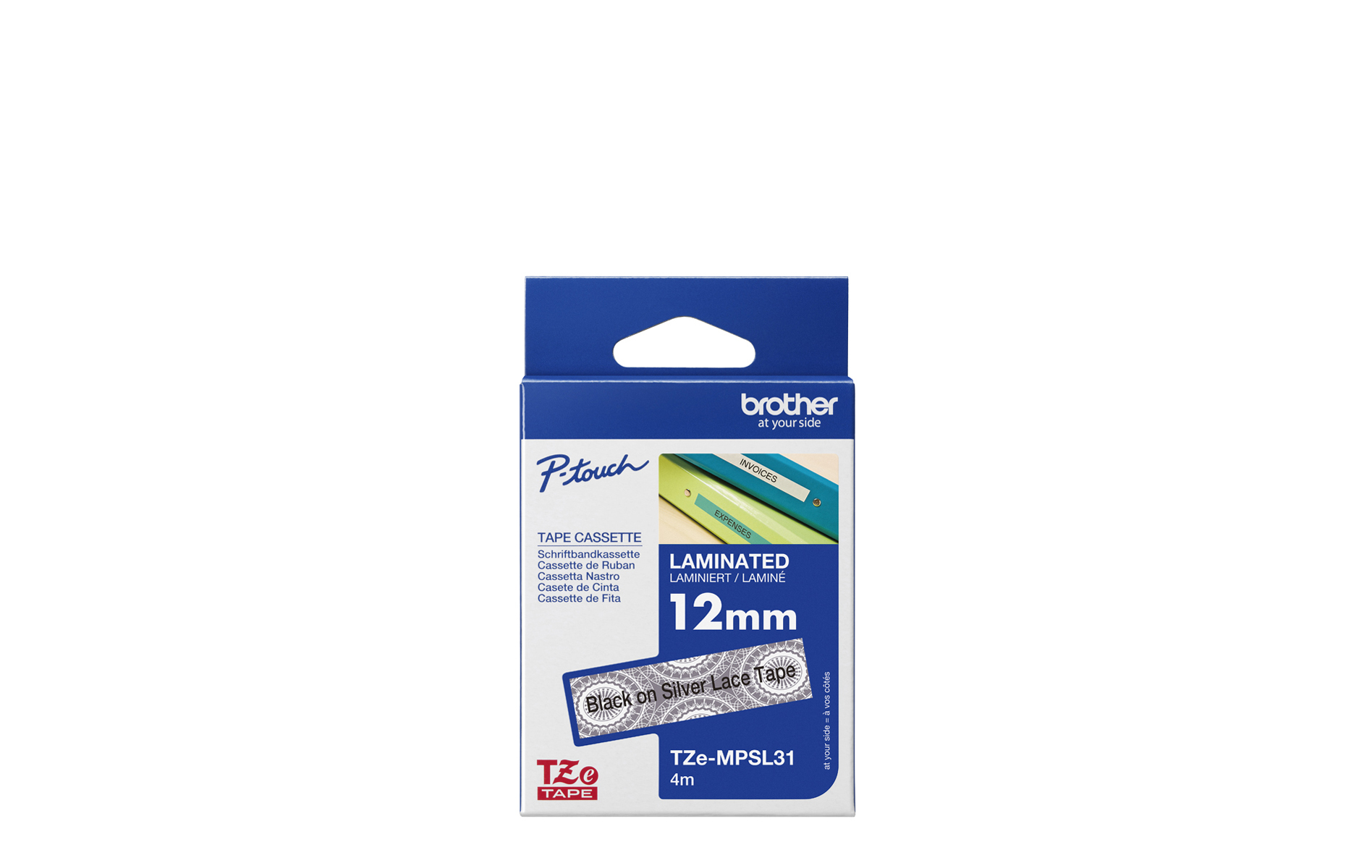 TZe-MPSL31, Black on Silver Lace, 12mm x 4m, Brother Genuine Laminated Tape
