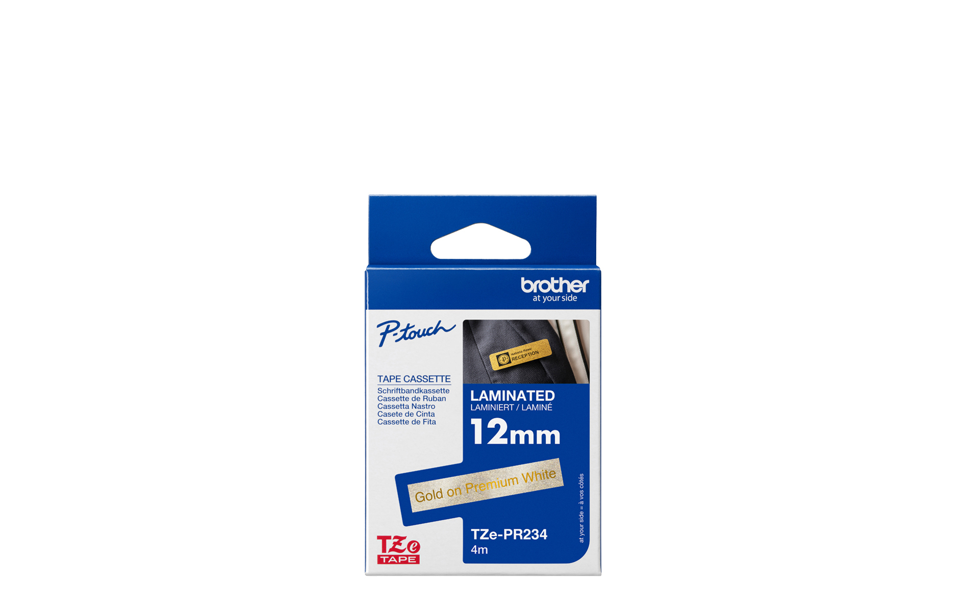 Genuine replacement TZe-PR234 premium labelling tape. Its sparkling white background gives a premium feel and makes it a great addition to customise your crafts, cards, and gifts. Its laminated overcoat ensures that your labels will be well protected from damage. Compatible with P-touch label printers that show the TZ or TZe logo.