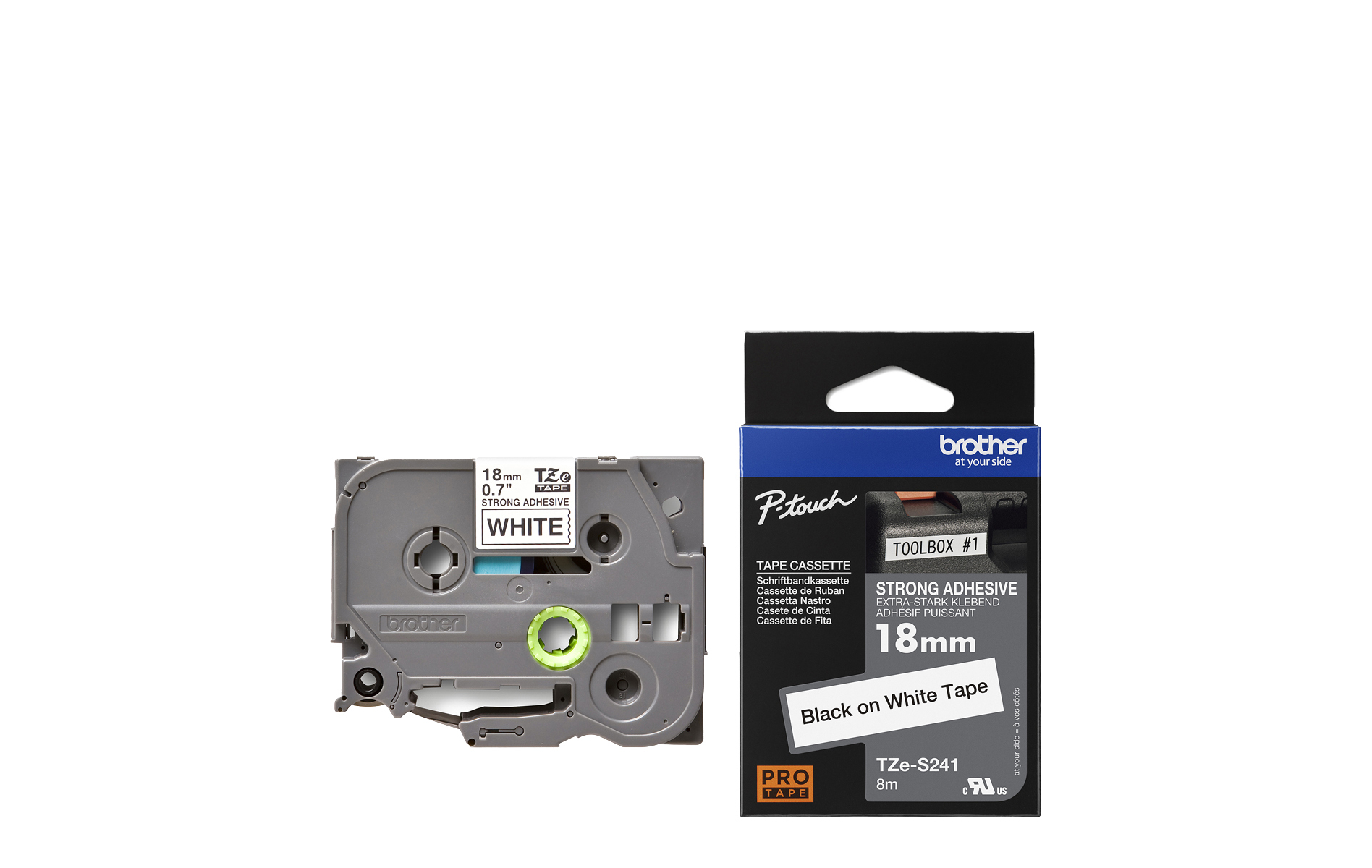 Compatible with a wide range of Brother’s P-touch printers, this genuine laminated TZe-S241 labelling tape cassette is especially versatile thanks to its easy-to-read black and white colour – so it comes in useful around the home, office and in other workplaces.