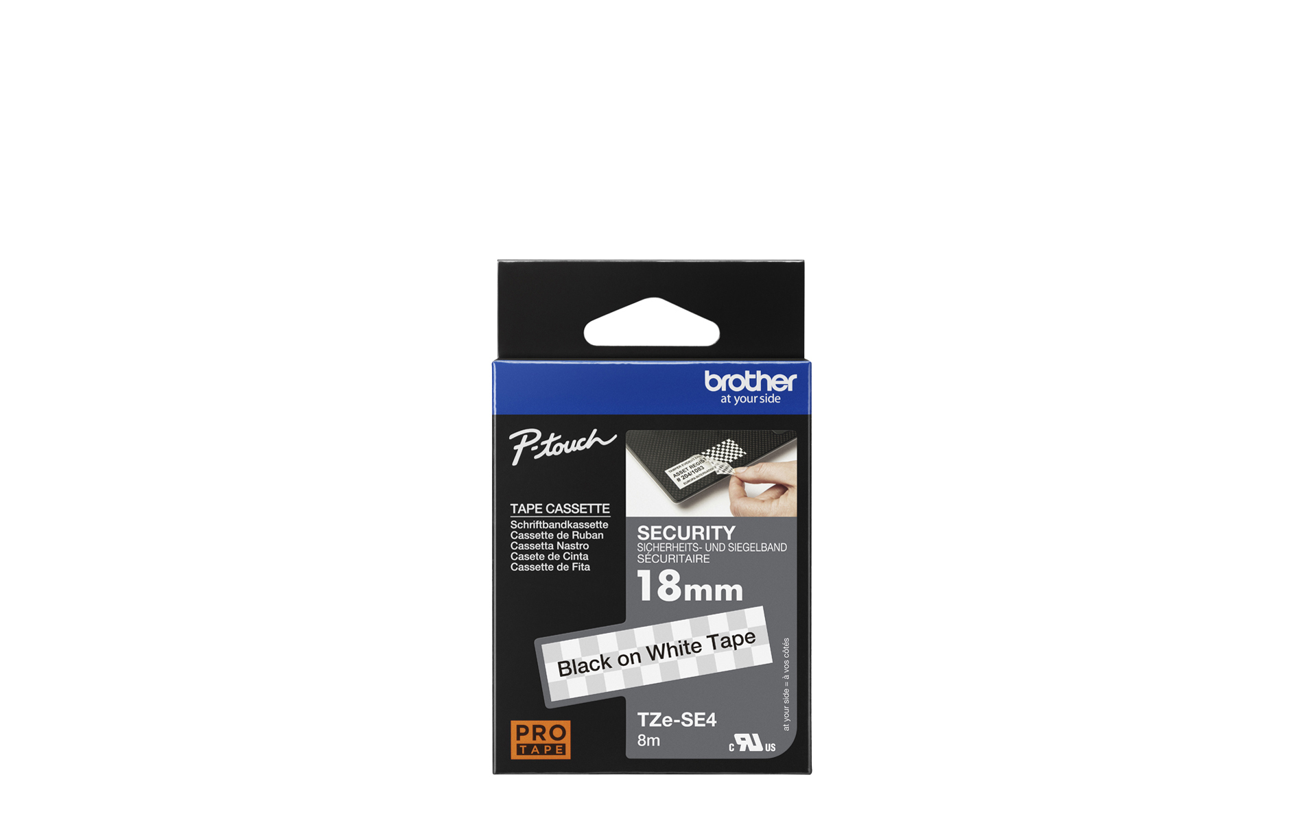 TZe-SE4 18mm (0.7") Black on White Security tape for P-touch 8m (26.2 ft)