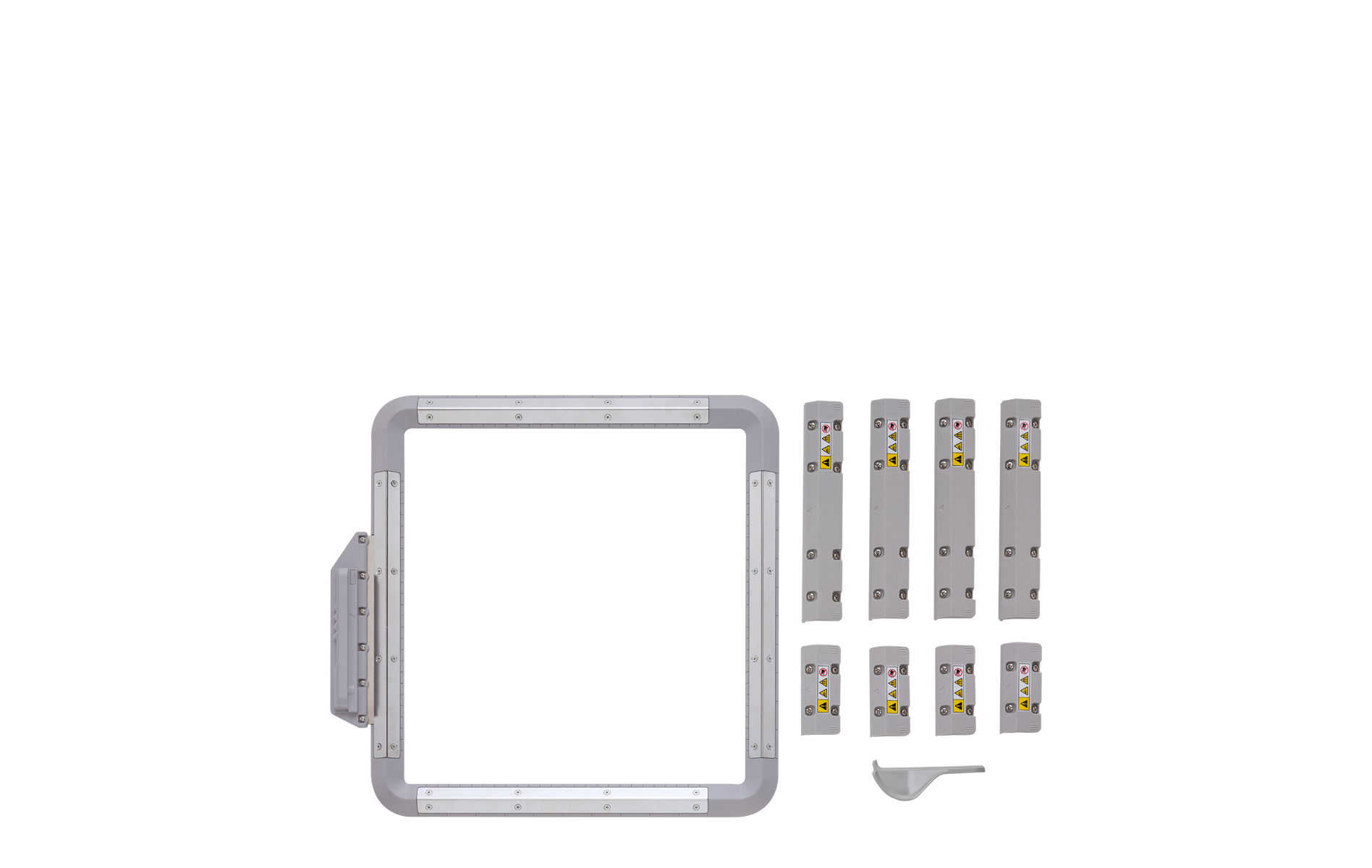 - Easy and accessible. No catches, no levers, just place the magnets and embroider